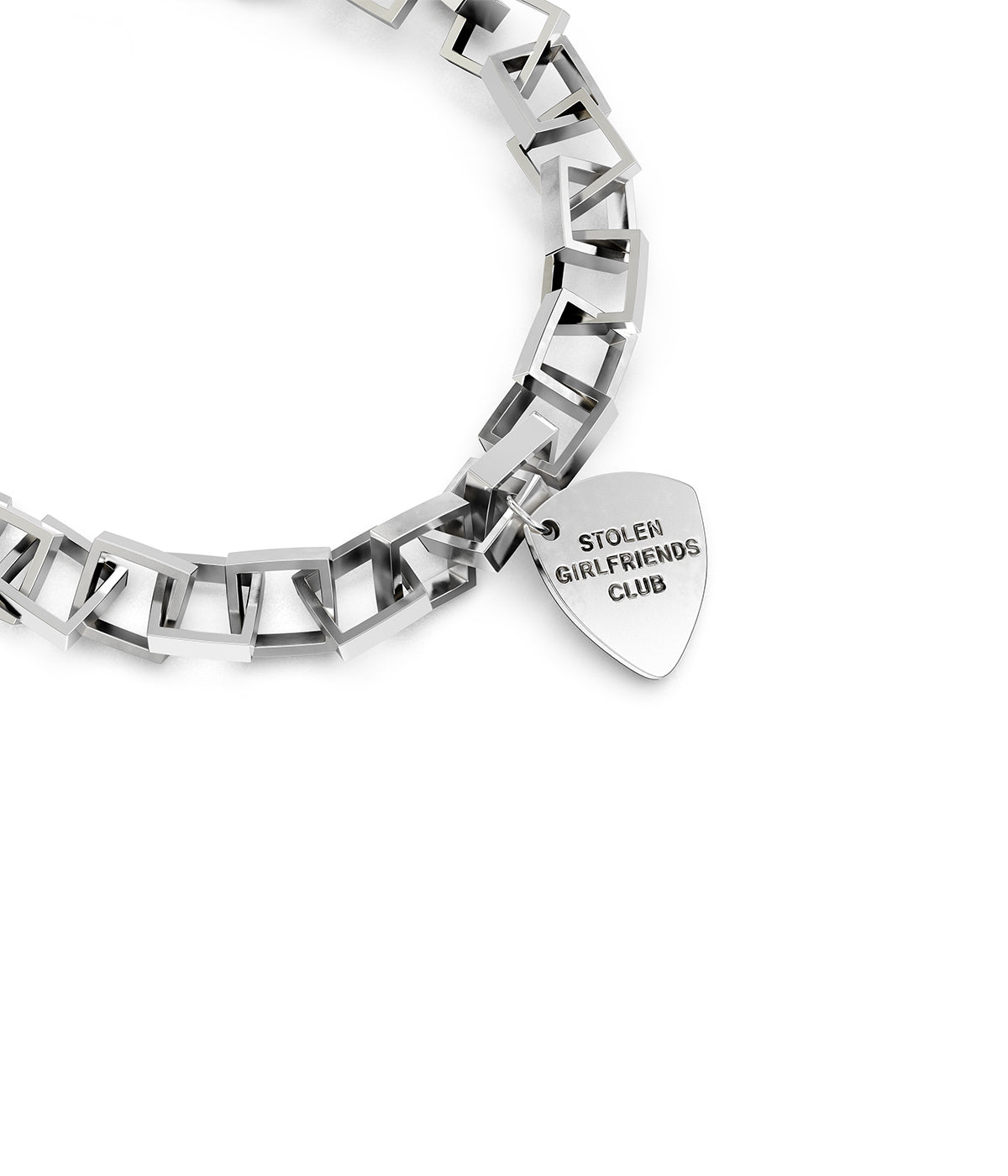 Engineered in solid sterling silver, the Death Metal Bracelet features weighty square-cut links and a plectrum-shaped charm engraved our logo. Designed with balance and rhythm in mind, its structure feels architectural but wearable. A masculine signature with presence.
