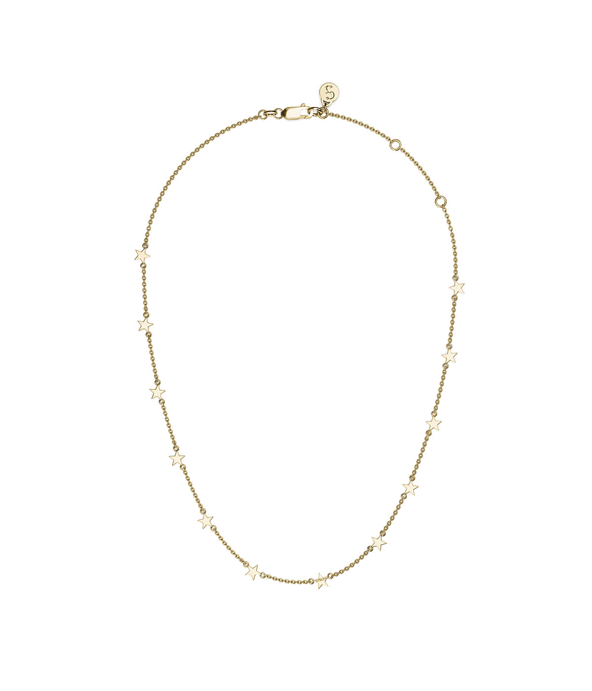 The Stolen Star Choker Necklace features 12 mini star charms fixed on a fine, sculpted 35cm chain with 3cm extension. This delicate charm-style necklace is made from a solid sterling silver base and coated in 1.5 microns of lustrous 18k yellow gold plating.