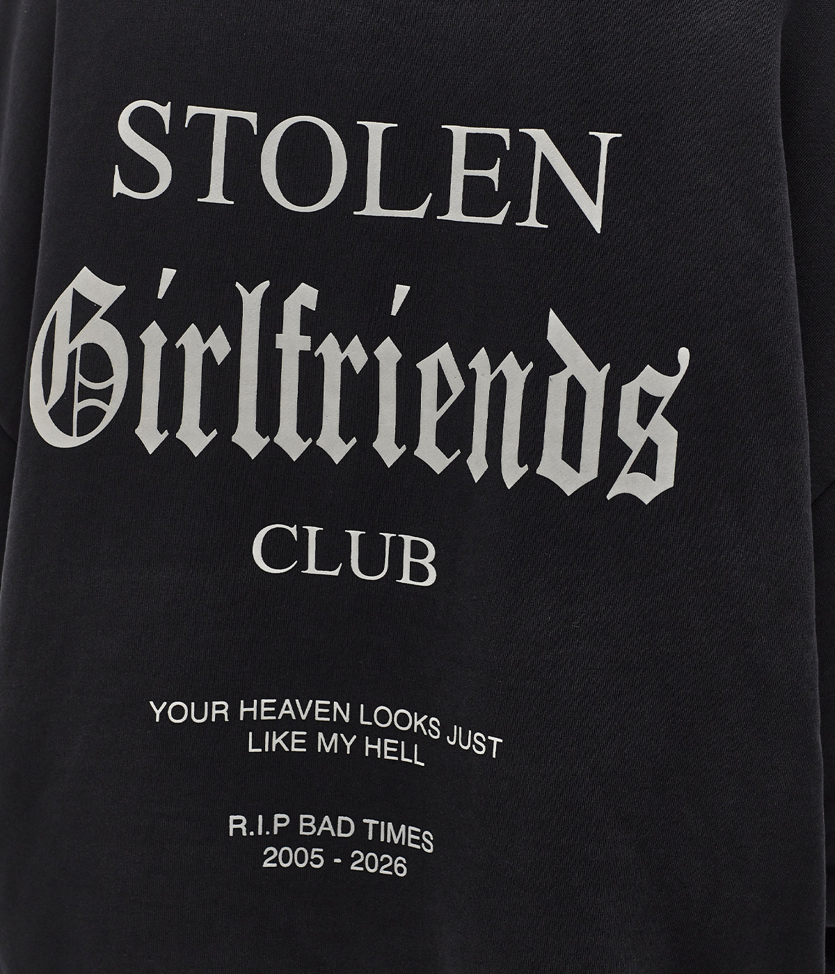 - Gothic text back print: “R.I.P Bad Times 2005–2026”