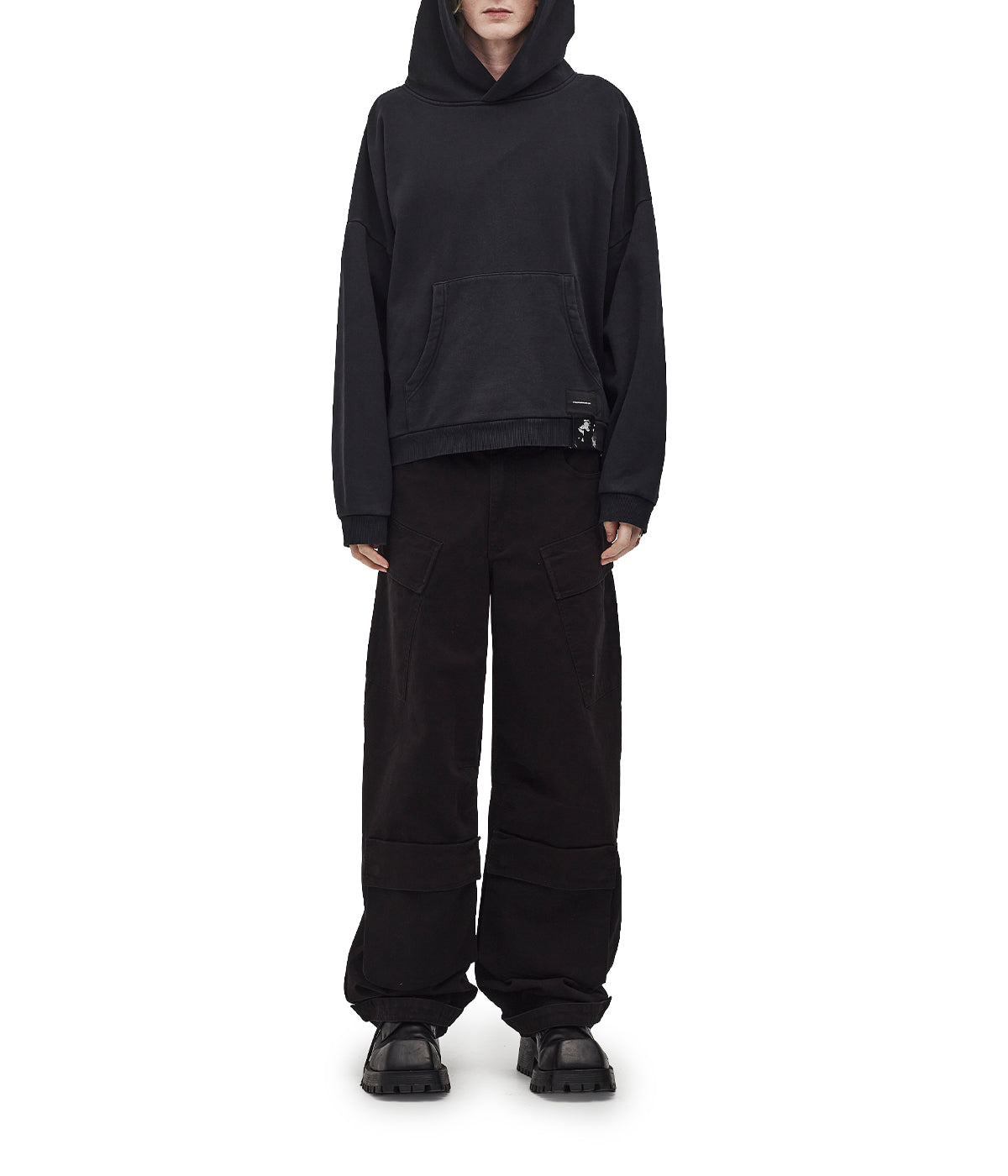 Crafted from heavyweight 500gsm organic brushed fleece, this pullover hoodie delivers structure and softness in equal measure. Cut in an oversized unisex silhouette with dropped shoulders, a generous hood, and raw hem. The back features our signature gothic text — a poetic farewell to the past.