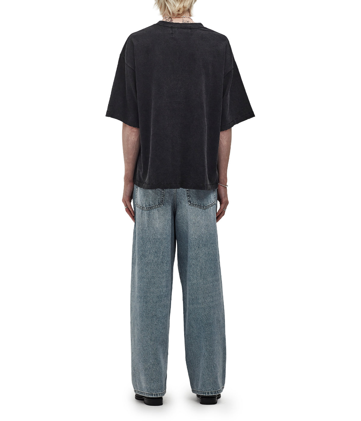 This relaxed-fit tee is cut in dense 320gsm organic cotton and washed in a deep Aged Charcoal tone for a lived-in, elevated finish. Designed with graphic artwork hand-drawn by our founder and creative director, each illustration reflects the brand’s devotion to irreverent nostalgia, romantic subversion, and streetwear precision. Finished with heavy garment washing for softness and a true worn-in feel.