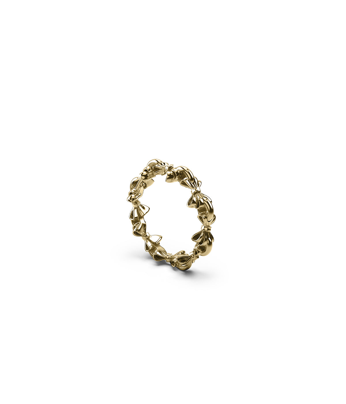 A house signature rendered in 18k gold-plated sterling silver, the Bow Infinity Ring features a continuous series of sculpted bow motifs. Each form is polished and balanced, linked to the next with seamless rhythm.