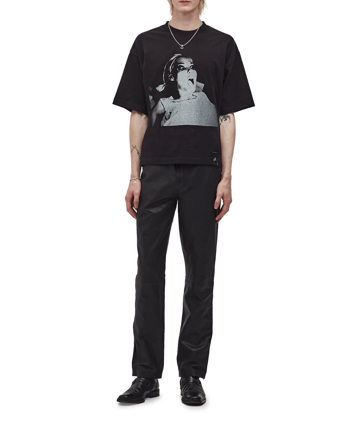 Cut from heavyweight organic cotton, the Horror Girl Tee features a bold black-and-white print across the chest and back. Designed by our founder, this piece reflects the brand’s signature blend of graphic romanticism and contemporary streetwear. A relaxed silhouette with dropped shoulders and a garment-dyed finish offers a worn-in softness while retaining structure.
