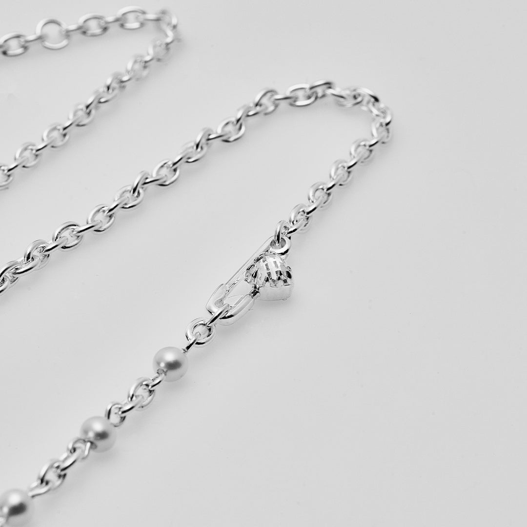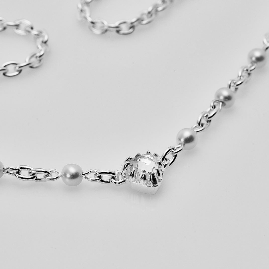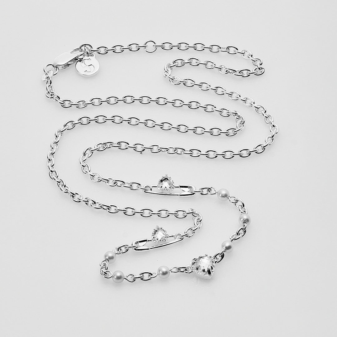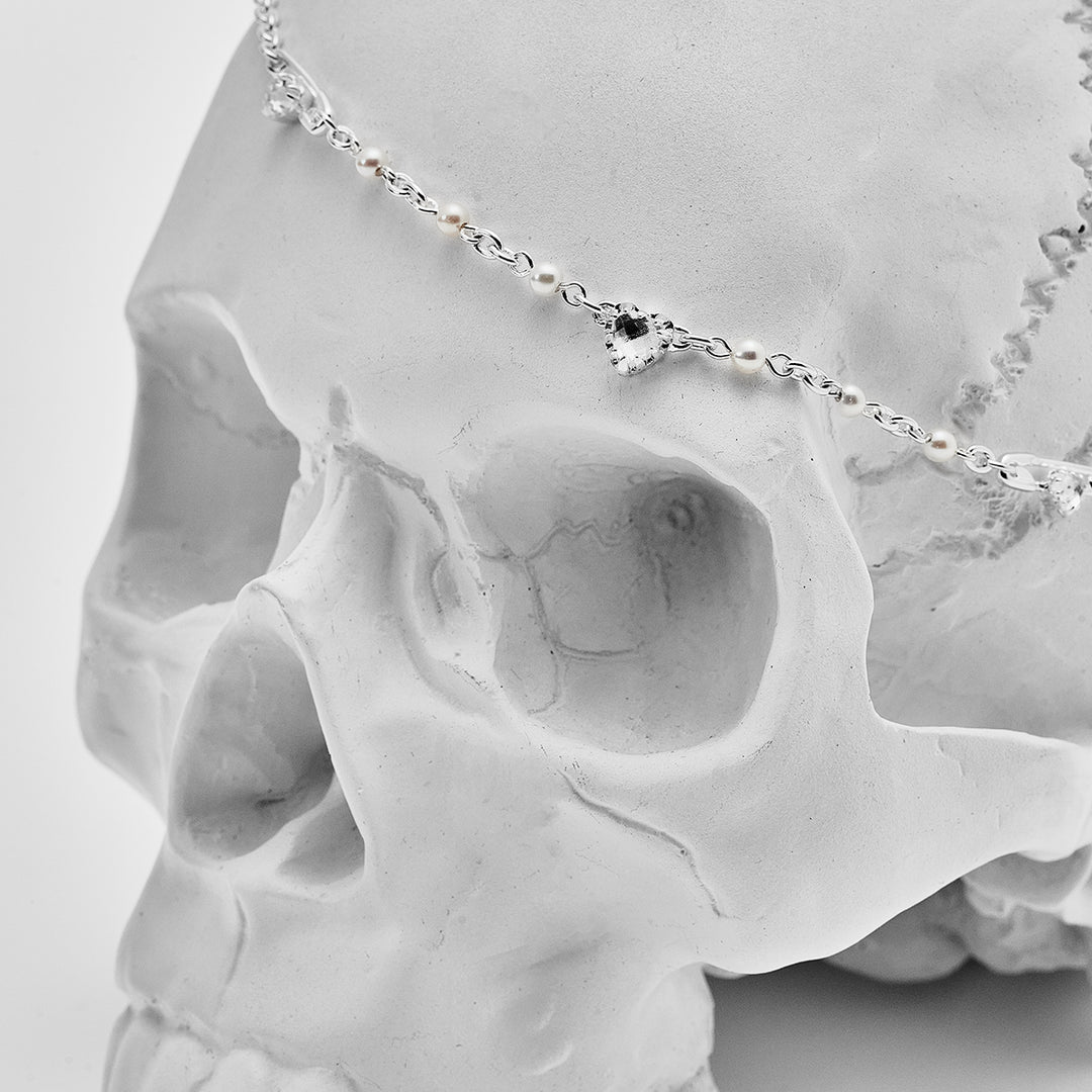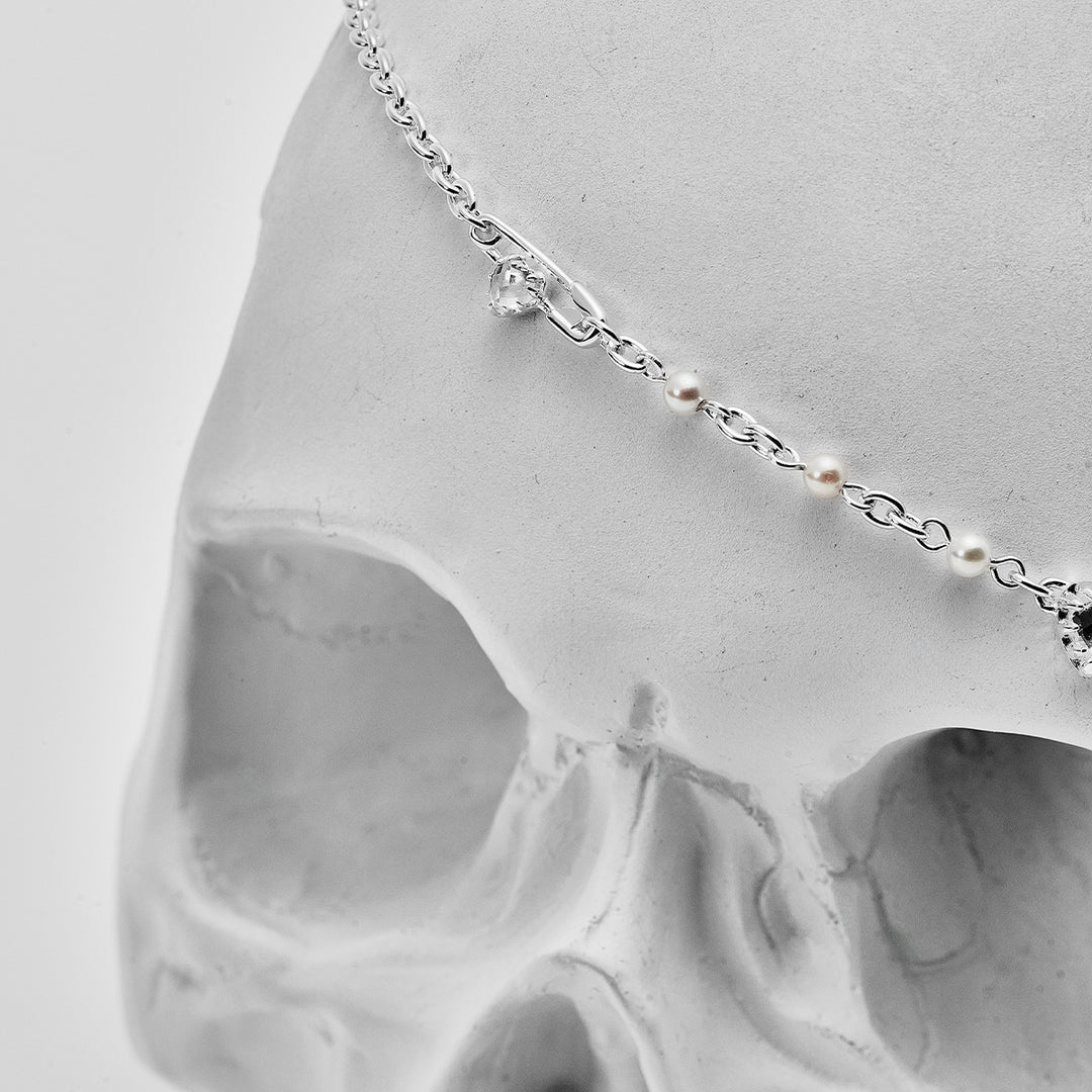 THE CONCEPT WAS TO CREATE SOMETHING DELICATE IN NATURE USING TROYE'S BIRTHSTONE: PEARL AND WHITE SAPPHIRE ON A FINER SCALE CHAIN.